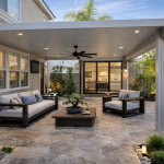 Popular for year-round comfort, insulated covers feature foam-filled aluminum panels that reduce heat transfer and noise. They’re ideal for OC’s varied climate, providing cool shade in summer and retaining warmth during cooler months. Learn more about insulated patio cover options.
